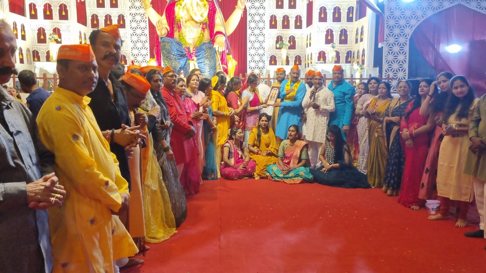 पंचम दिवस की रात्रि कालीन आरती का सौभाग्य शहर की अग्रणी सामाजिक संस्था सेवा संकल्प वेलफेयर सोसाइटी के सदस्यों को प्राप्त हुआ आरती के पश्चात संस्था ने आयोजन समिति को भगवान गणेश छिंदवाड़ा के महाराजा का छायाचित्र भेंट किया ।