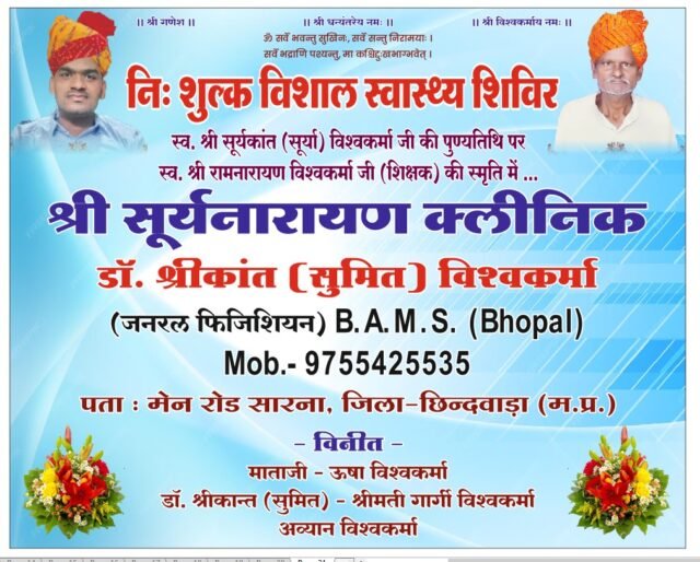 छिंदवाड़ा दबंग इंडिया / सूर्यनारायण क्लीनिक डॉ. श्रीकांत (सुमित) विश्वकर्मा (जनरल फिजिशियन) B. A. M. S.