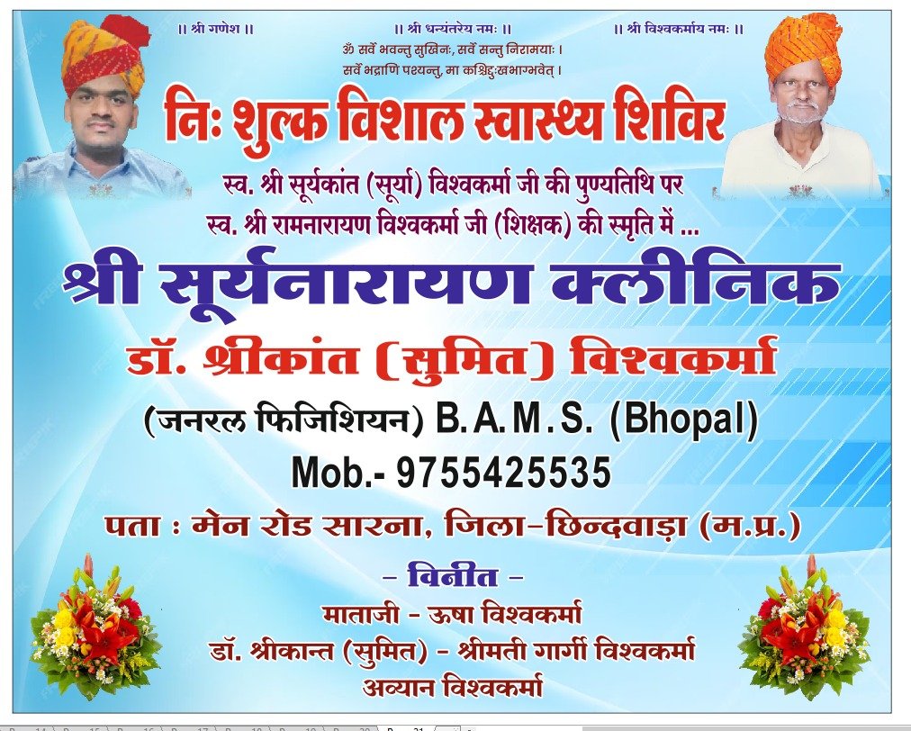 सूर्यनारायण क्लीनिक डॉ. श्रीकांत (सुमित) विश्वकर्मा (जनरल फिजिशियन) B.A.M.S.