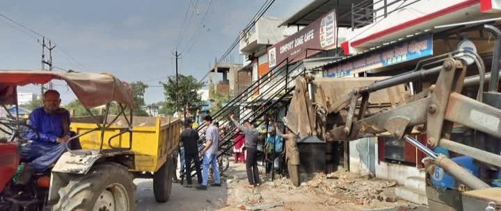 वहीं वार्ड क्रमांक 7 पी.जी. कॉलेज रोड पर कुछ दुकानदारों द्वारा सड़क पर चबूतरे एवं गुमठी लगाकर किए गए अतिक्रमण को निगम दल द्वारा हटाया गया। इस दौरान दो हाथ ठेले जप्त कर फटका मशीन परिसर पहुंचाए गए।