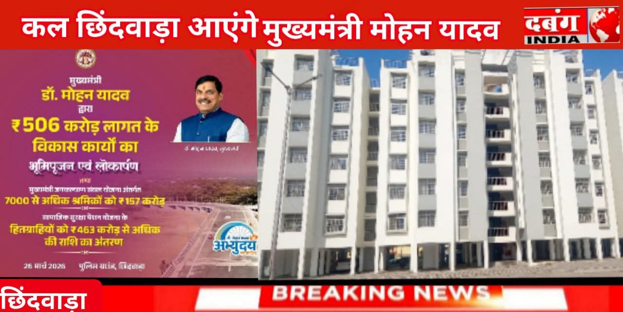निर्धारित दौरा कार्यक्रम के अनुसार मुख्यमंत्री डॉ. यादव 26 मार्च 2026 को प्रातः 10.45 बजे उज्जैन से हवाई पट्टी छिंदवाड़ा पहुंचेंगे और सौंसर में आयोजित कार्यक्रम में शामिल होंगे।